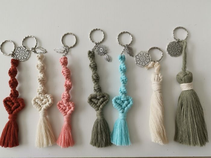 Vends lots de "porte clef" Personnellement je m'en sert souvent pour décorer les objets ou les fermeture casse, comme les sacs de vos enfants. ( pas de vécu 😂) Fait main, les modèles en photos sont disponibles tout de suite mais je peux en refaire autant que vous le souhaitez. Les couleurs que je dispose sont là mais d'autres sont envisageable sur commande. 8€ l'unitée 15€ les 2 20€ les 3 Envoie rapide en enveloppe cartonné 😁