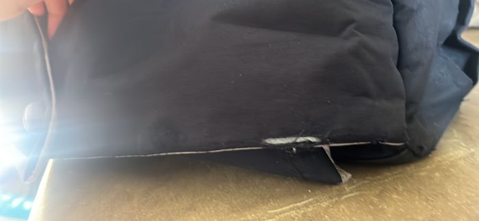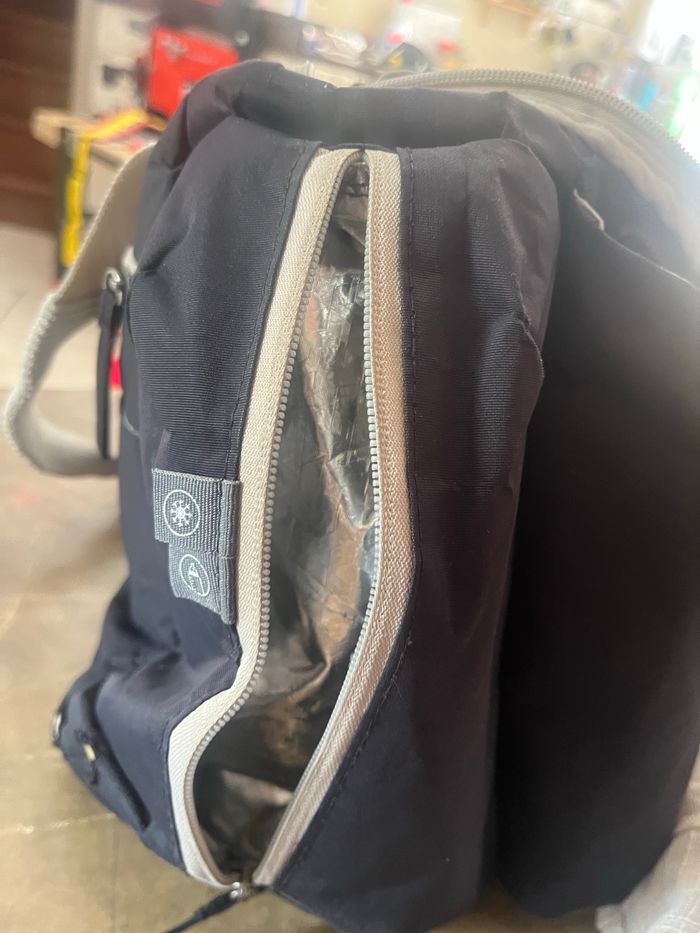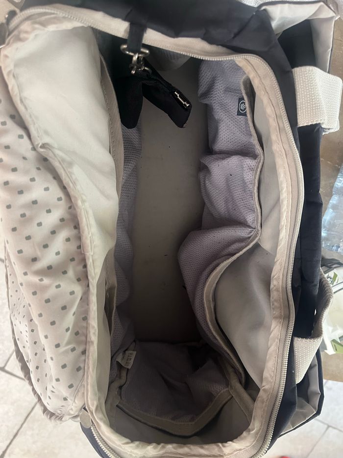 Sac à langer très pratique Comprenant bcp de compartiment Partie isotherme et tapis à langer Il y a une petite déchirure sur le bas mais qui ne change en rien son utilisation