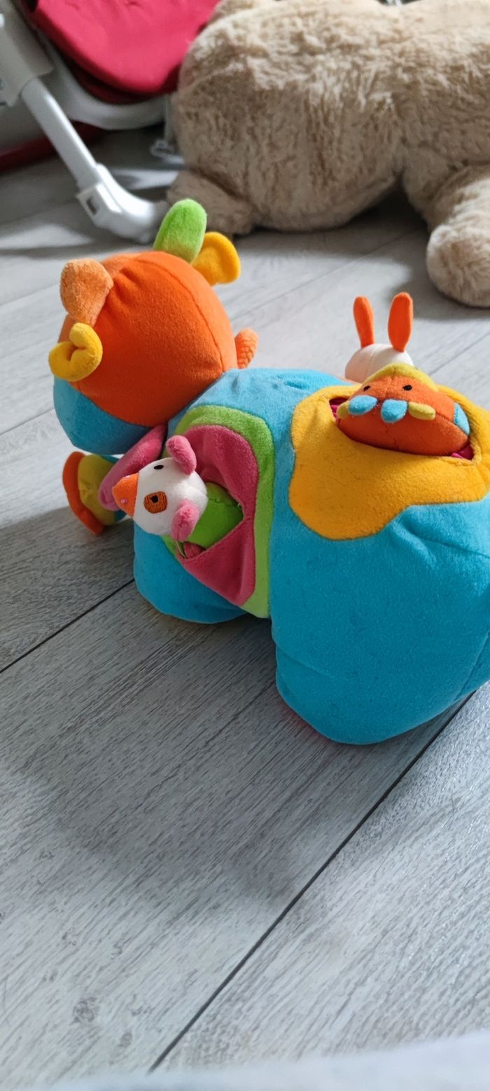 Peluche vache qui fait le bruit "meuh" Très bon état. Fonctionne très bien.