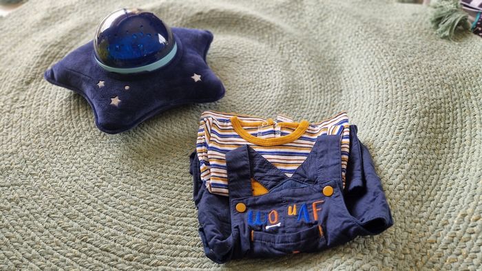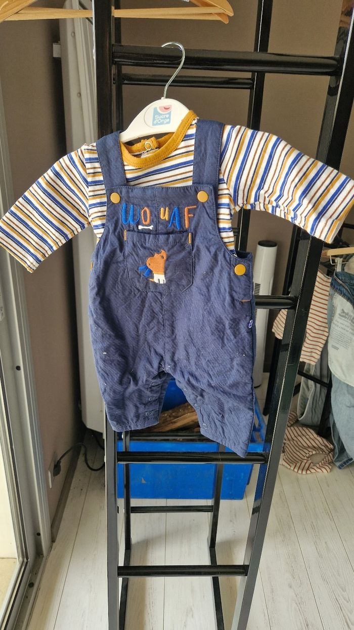 Bonjour Je vends ce petit ensemble salopette + top De marque : Sucre d'orge Taille : 1 mois - 54 cm Il est NEUF, a été lavé mais jamais porté (gros bébé qui n'a pas mis du 1 mois très longtemps .. Bonne journée à toutes et tous