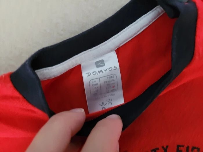 t-shirt manches courtes 18 mois 85 cm domyos rouge en très bon état