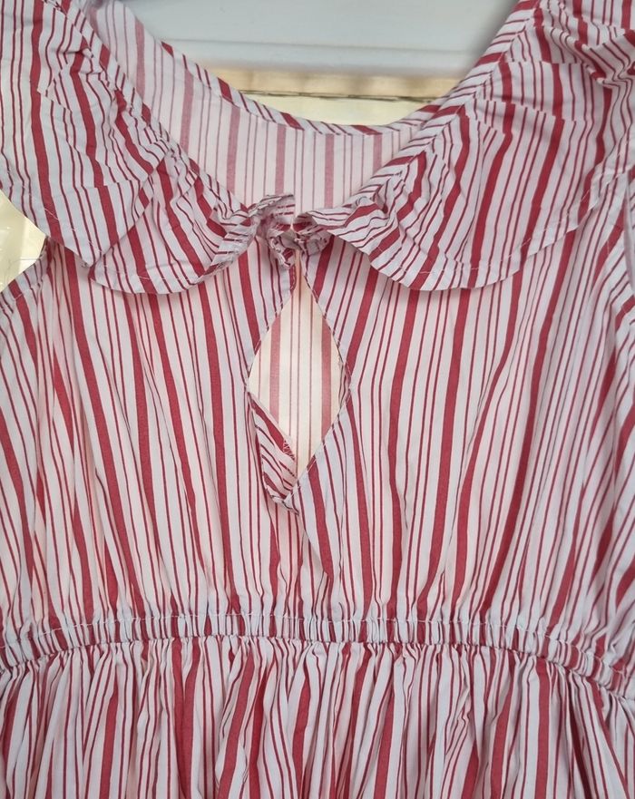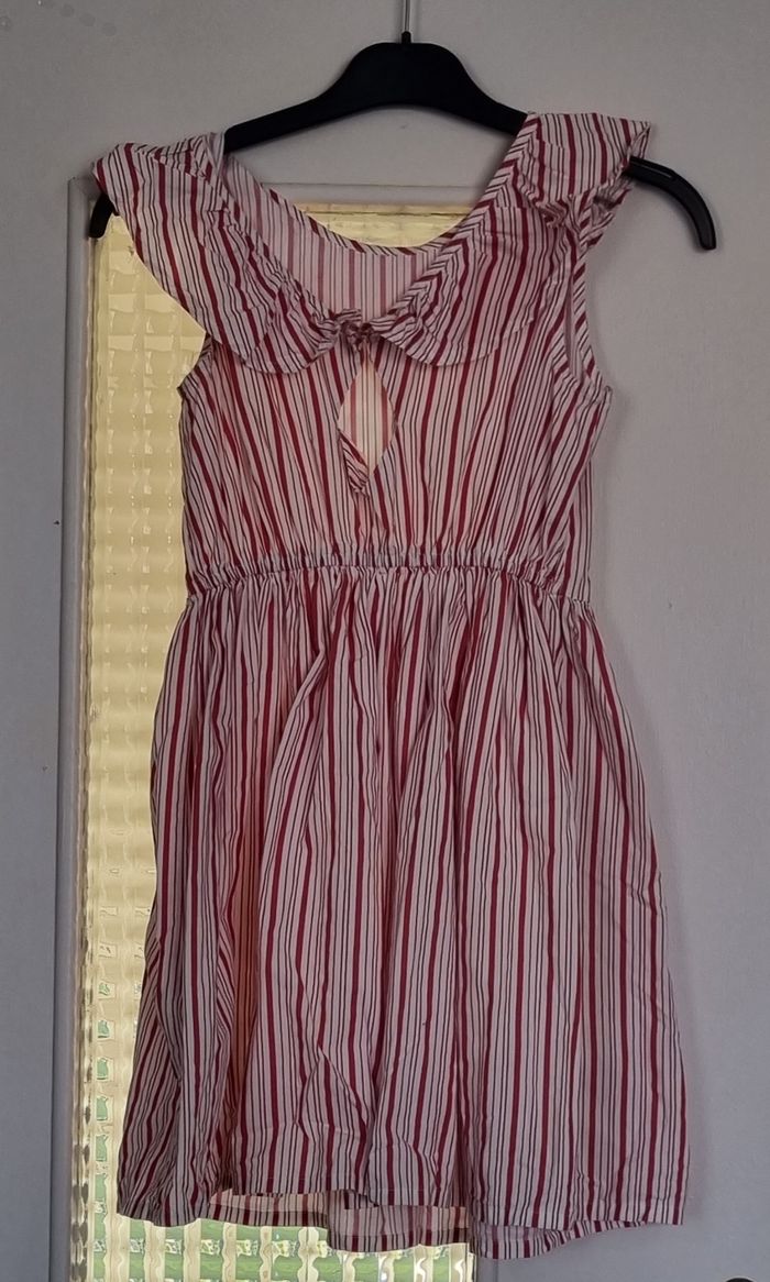 robe blanche et rouge à rayure col volante kiabi taille 10 ans - photo numéro 5
