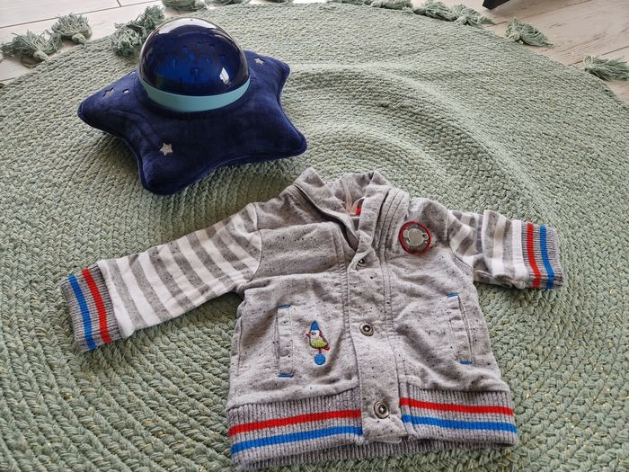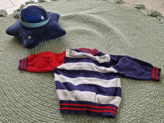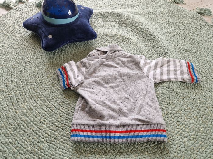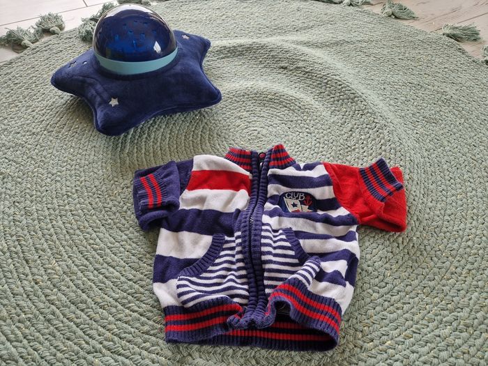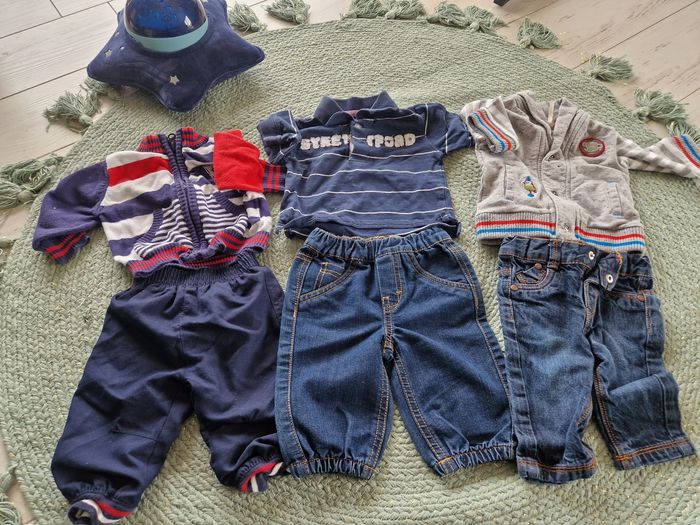 Bonjour Je vends ce lot bébé garçon qui comprend 2 jeans en TBE 1 pantalon de survet en bon état 1 gilet bleu blanc rouge à fermeture en zip 1 gilet gris à fermeture à pression 1 polo rayé bleu et blanc à manches longues en tbe Taille 3 mois Différentes marques N'hésitez pas à aller faire un tour sur mon dressing ! Belle journée ! ☀️