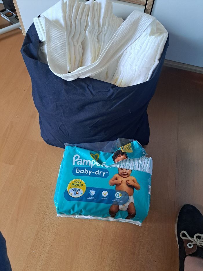 Couches T2 Pampers baby dry et premium, trop acheté. Neuves, juste sans emballage (rangement dans placard fermé) Total 147 couches.