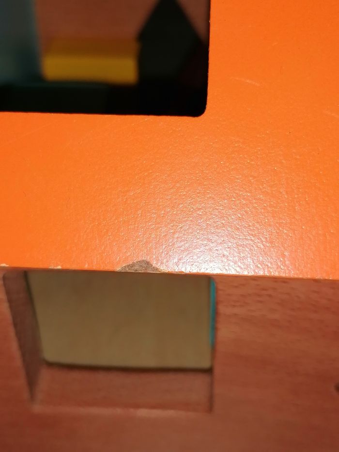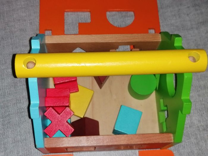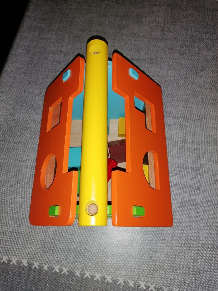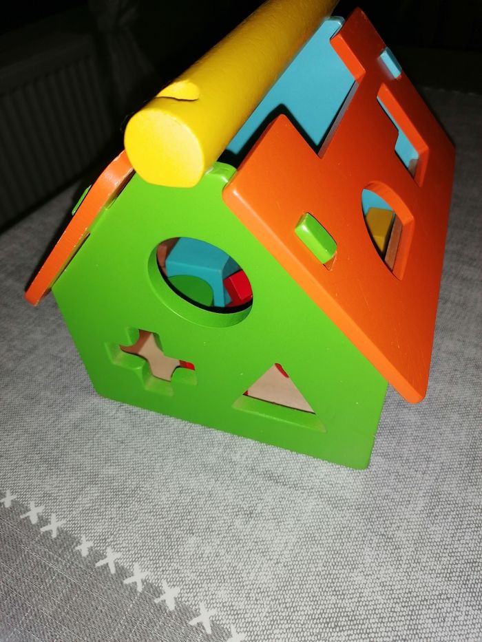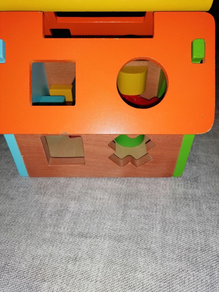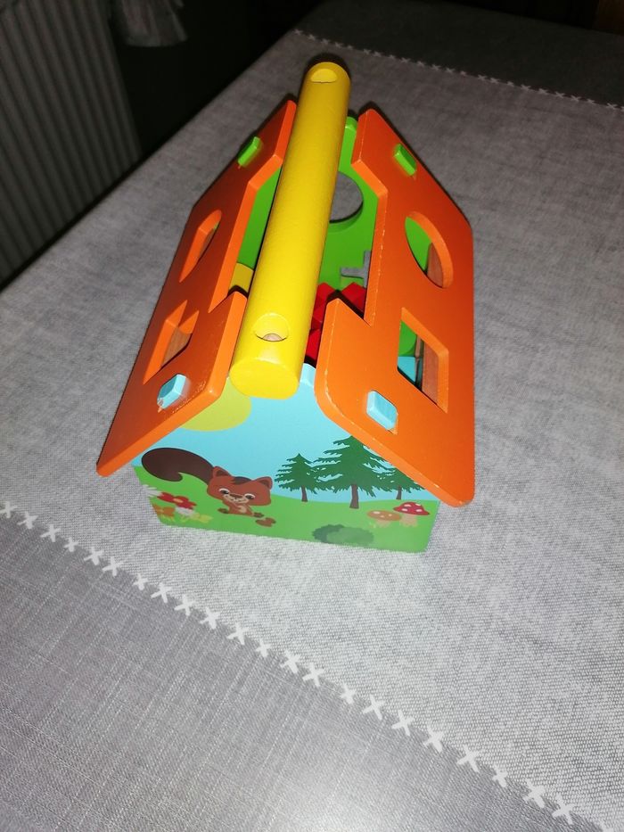 Petite maison de bois colorée avec cubes à forme, en très bon état, juste 2,3 petits défauts voir les dernières photo s