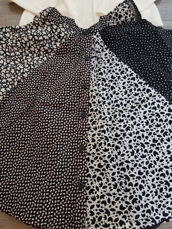 Ensemble comprenant une robe, un gilet et un legging. Couleur noir, blanc et rose