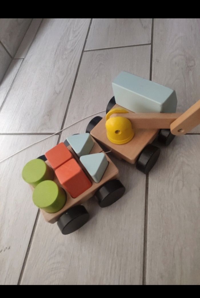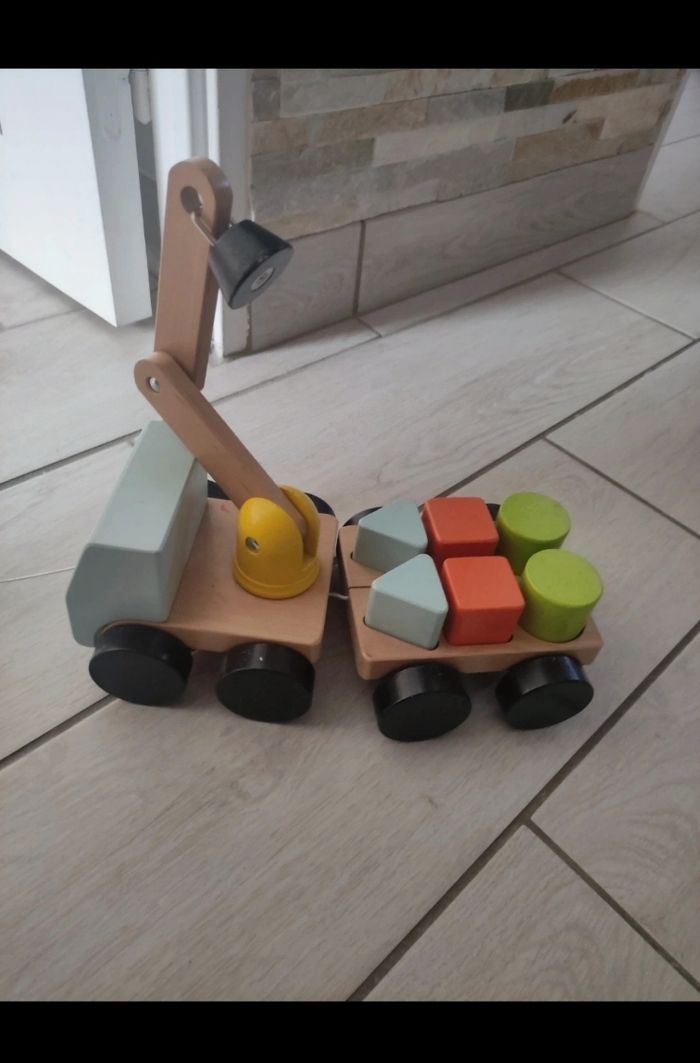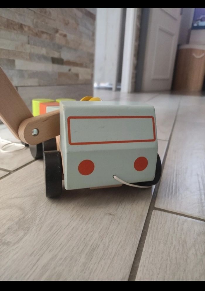 Très bon état, jeu en bois avec éléments aimantés. Camion coloré, à tirer.