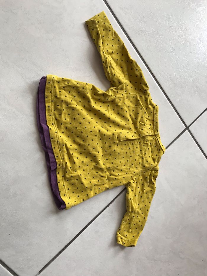 Sweat vert à petits pois avec un hibou En 3 mois de la compagnie des petits Se ferme au dos par deux boutons pressions