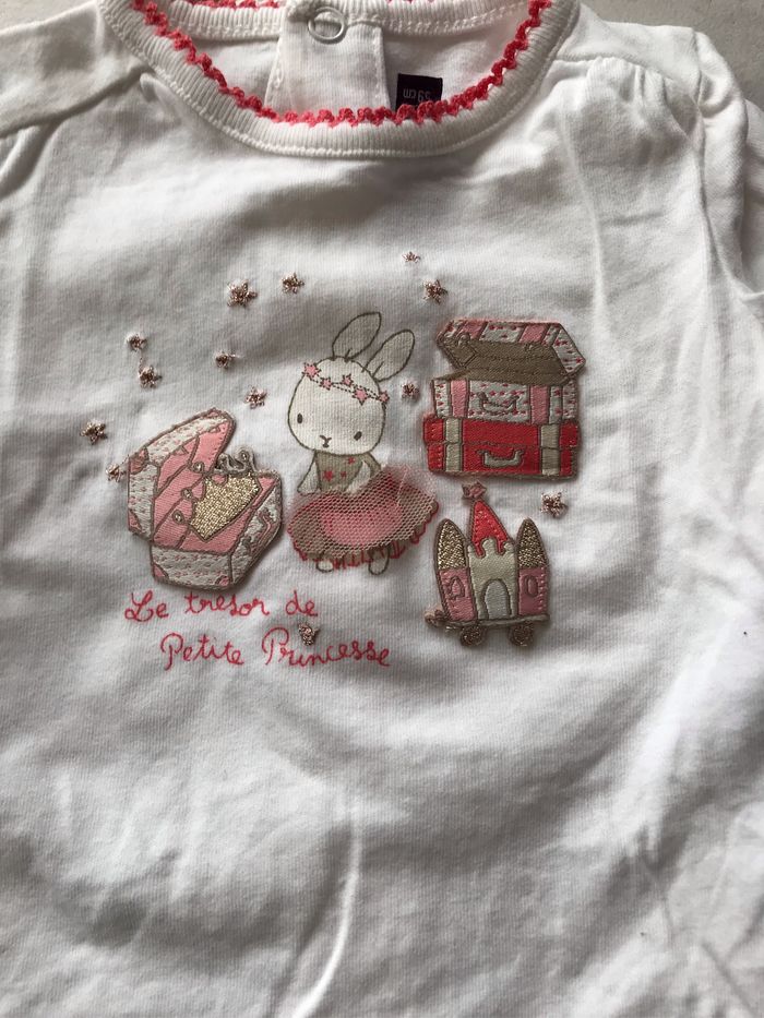 Sweat blanc avec un lapin blanc dessus qui a un tutu 3 mois de la marque sergent major Se ferme par bouton pression