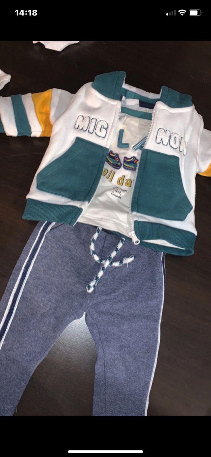 Ensemble jogging tee-shirts long et veste tout doux à l’intérieur taille 3 mois
