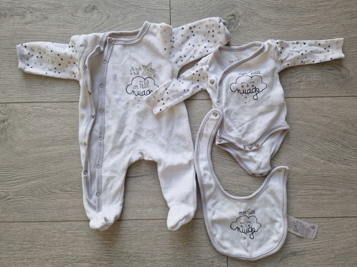 Ensemble 3 pièces 1 pyjama 1 body 1 bavoir assortis Très bon état