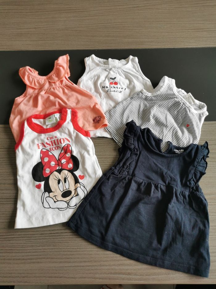 Lot de 5 débardeurs Différentes marques : Kiabi, 3 pommes et Disney baby Taille 3 mois État impeccable