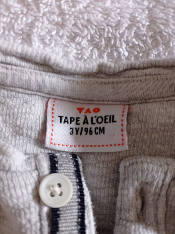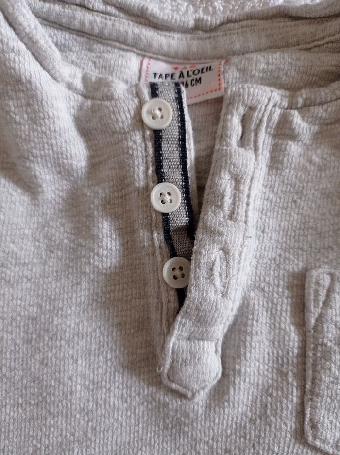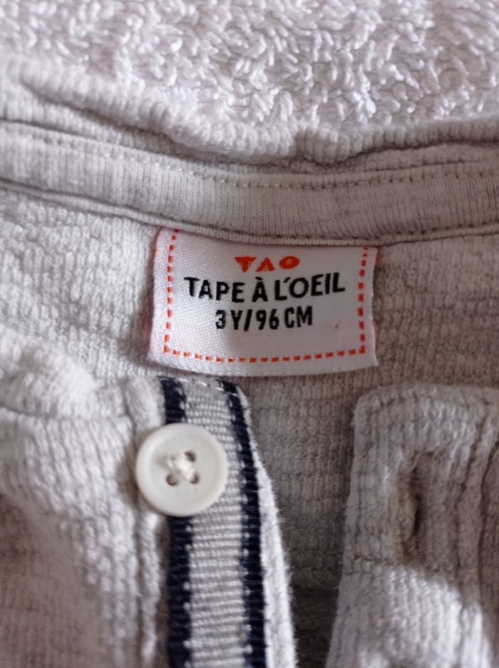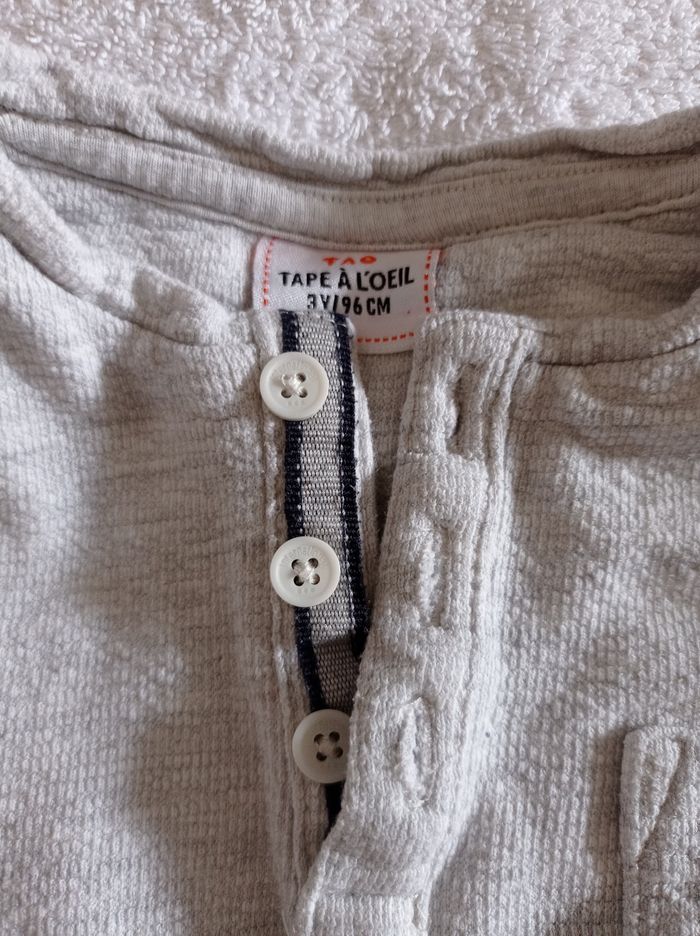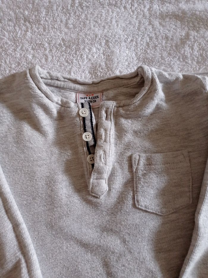 Pull manches longues pour l'été couleur blanc légèrement grisé voir photos 3 boutons une poche col rond à la tunisienne marque tape à l'oeil âge 3 ans 96 cm super pull d'été très agréable à porter voir photos - photo numéro 7