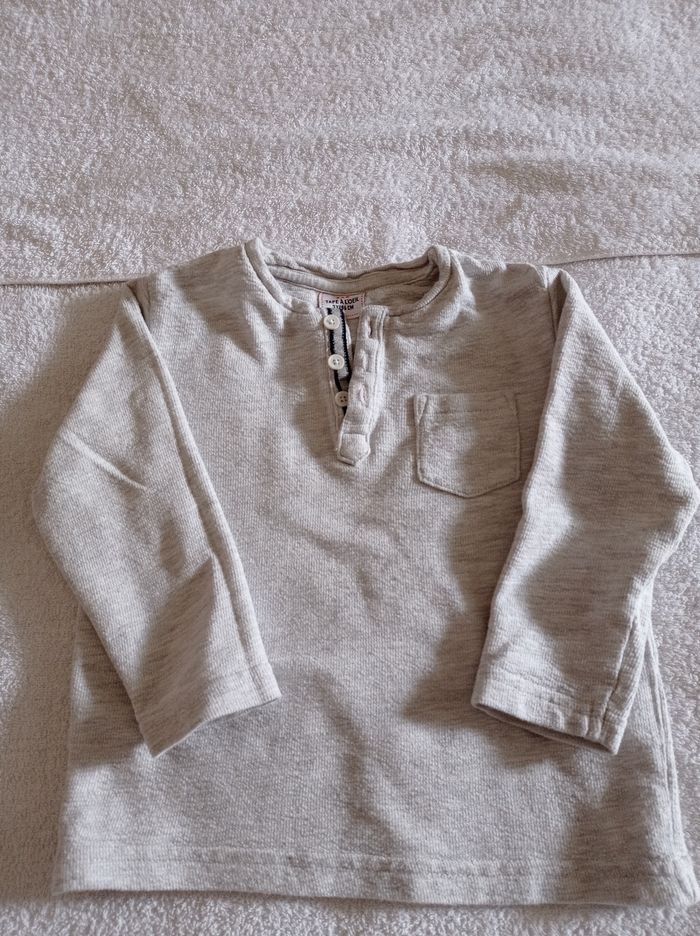 Pull manches longues pour l'été couleur blanc légèrement grisé voir photos 3 boutons une poche col rond à la tunisienne marque tape à l'oeil âge 3 ans 96 cm super pull d'été très agréable à porter voir photos - photo numéro 2