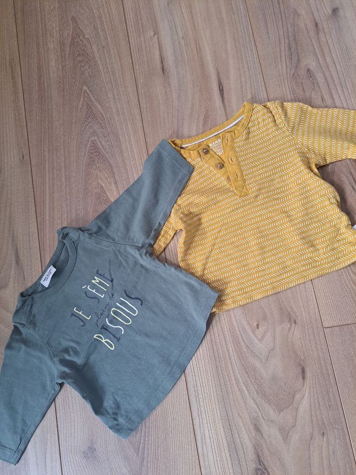 Lot de 2 tee shirts manches longues 3 mois Kiabi et tape à l'oeil Moutarde et kaki État neuf