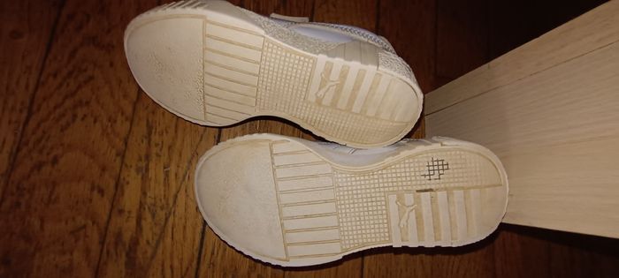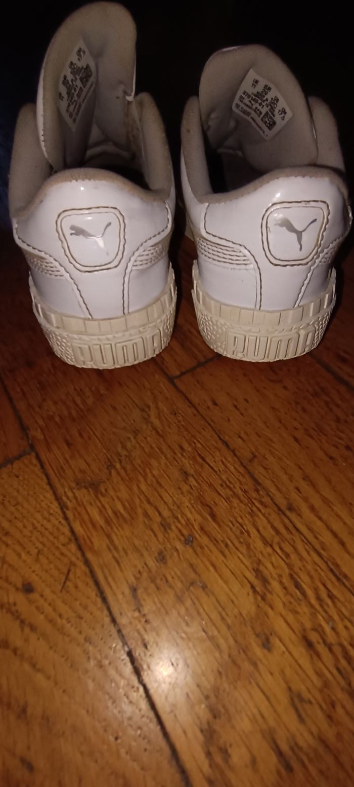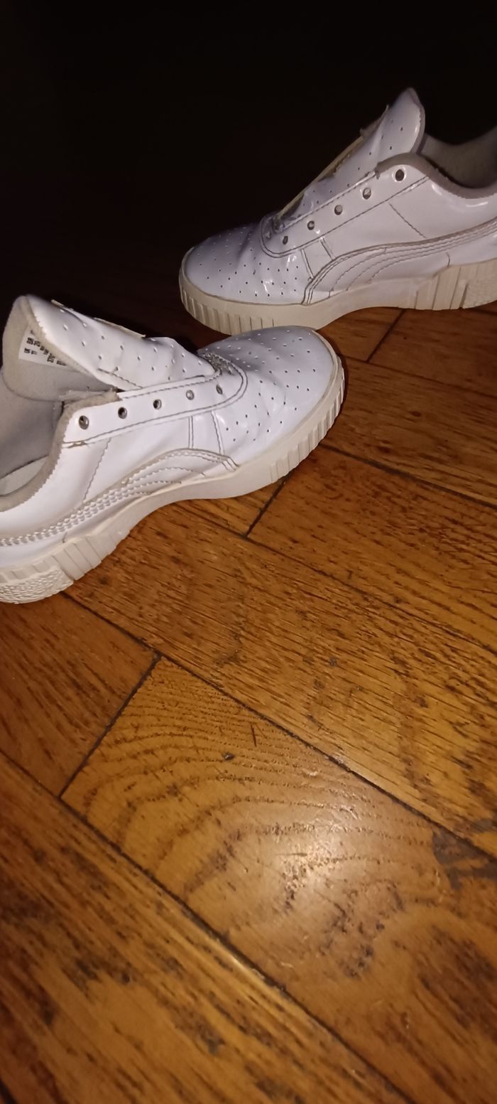 Paire de puma blanche brillante Manque lacets Semelles légèrement jaunis