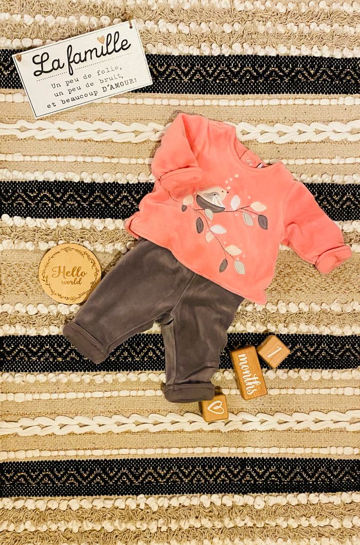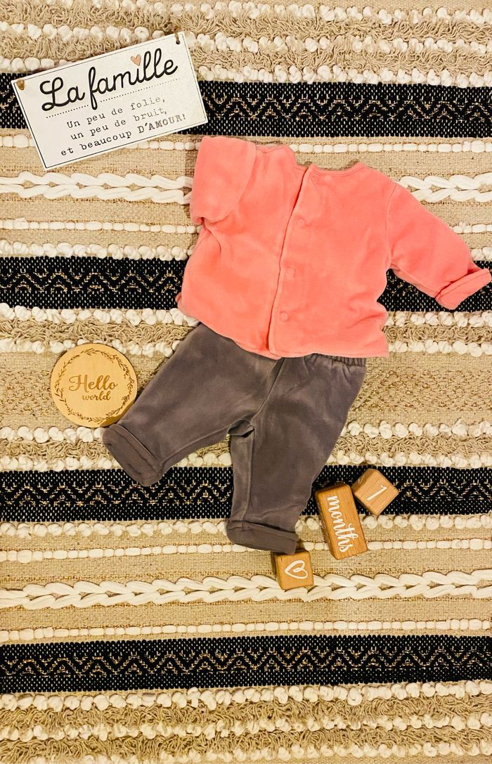 Très joli ensemble polaire pour bébé fille rose et gris neuf et chaud