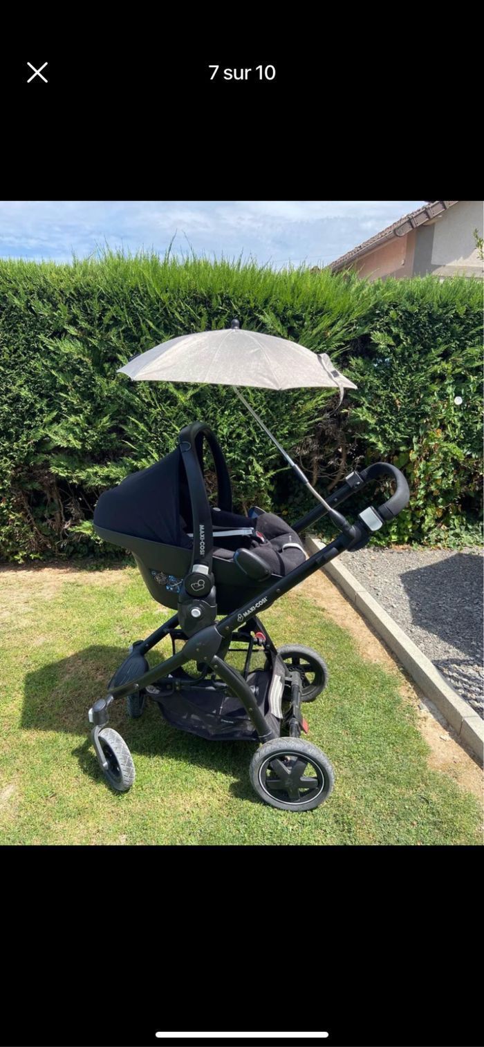 Vends Pack complet : - Poussette qui peut être placé également face parents - Nacelle avec ses fixations pour la voiture - Cosy avec les fixations pour la poussette avec sa basse isofix -Les habillages de pluies pour la poussette et le cosy Ainsi que l’ombrelle