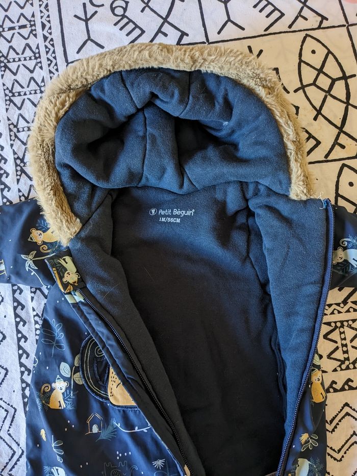 Combinaison de taille 1 mois porté juste quelques fois . Assez chaude pour les températures fraîches d'automne, fin d'hiver .