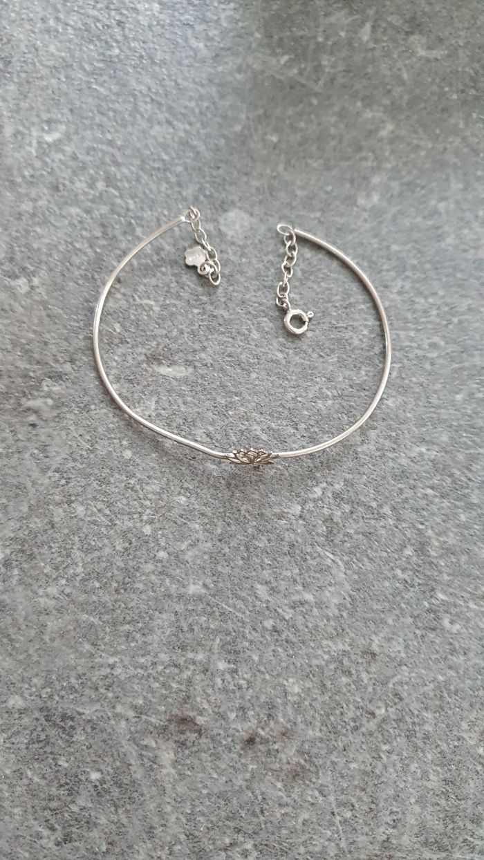 Bracelet jonc argent 925/1000 Fleur de lotus Légèrement moins arrondi, voir photo