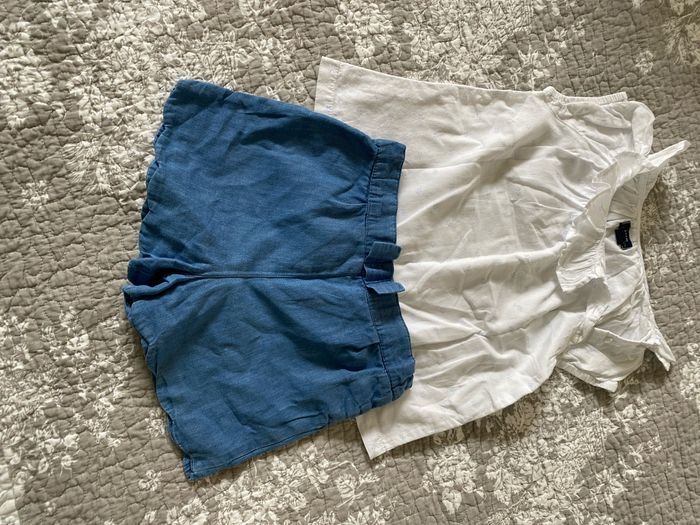 Ensemble avec: 🌷short Cyrillus en 18 mois effet jean très bon état 🌷 chemise manches courtes avec boutons sur le côté. Très joli motif. Très bon état