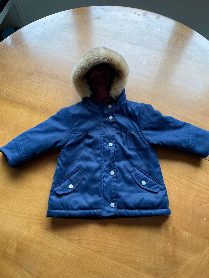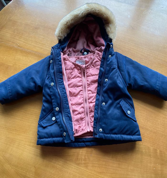 Manteau bébé fille bleu et rose Vertbaudet Taille 12 mois.