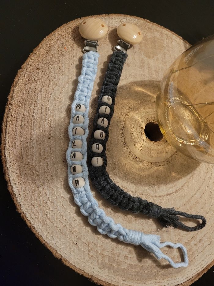 Attache tétine en macramé Différentes couleurs disponible.