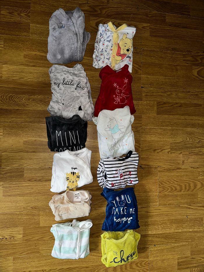 Je vend 12 bodies pyjama dont 10 velours et 2 un peu plus léger de marque divers en 3mois.