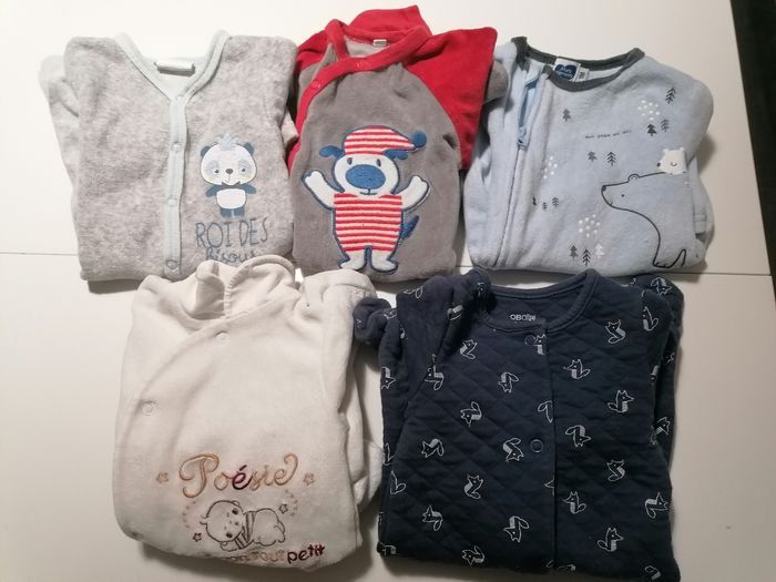 Lot de 5 pyjamas garçon, taille 1 mois, bon état.