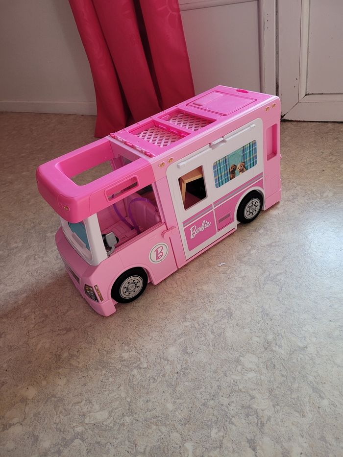 Camping Car barbie en bon état général juste un truc casser au dessus mais ne gêne en rien à l'utilisation (voir photo 3).