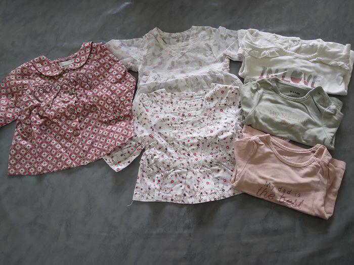 Lot de 3 blouses et 3 maillots 1 mois mis quelques fois mais en très bon état