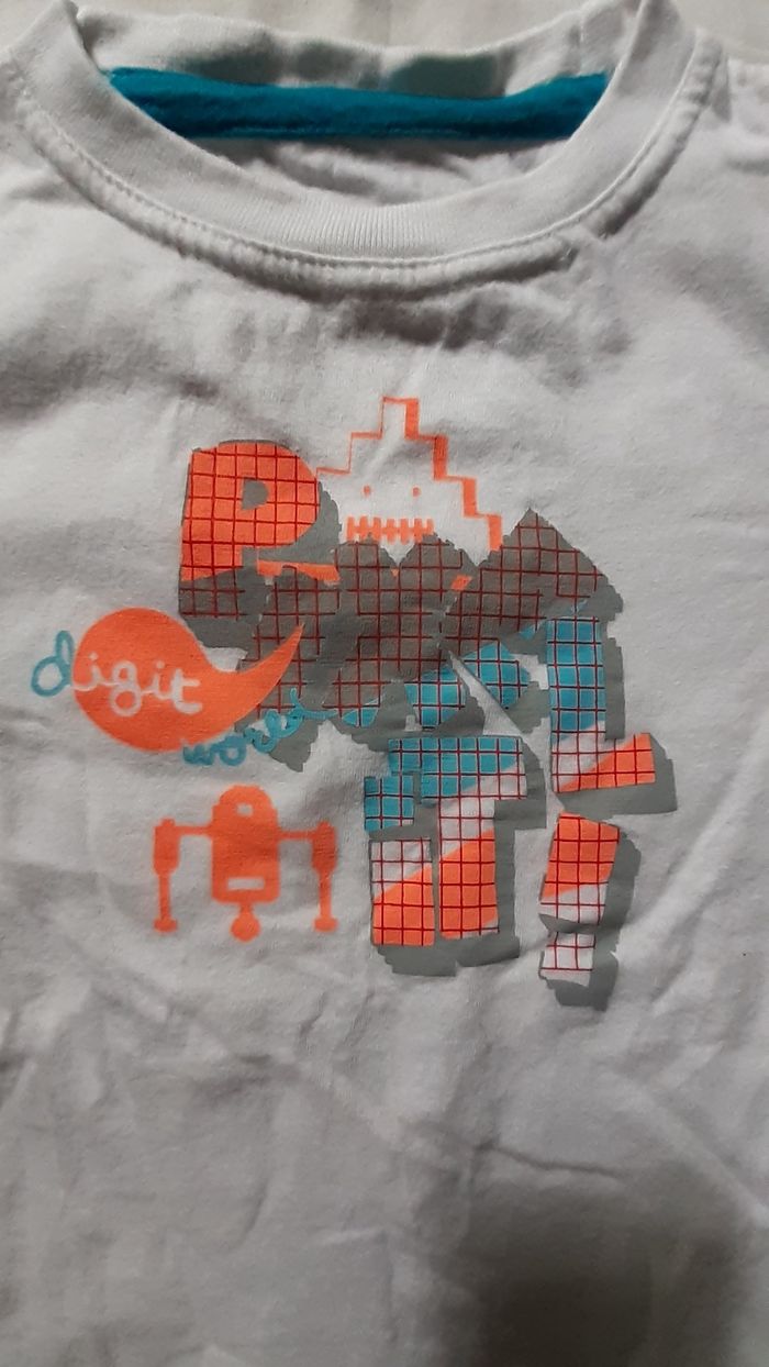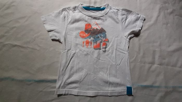 Tee-shirt blanc motif orangé et gris - photo numéro 1