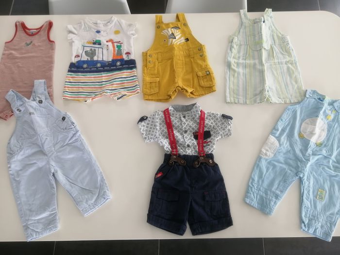 Je vois propose un grand lot de vêtements en TBE pour un petit garçon, taille 6 mois. Plus de 50 articles (économique !) : 5 pyjamas ML 7 body ML et 12 body MC 1 gilet ML et une veste sans manche 6 pantalons 1 short 1 ensemble Lee Cooper short a bretelles et chemise 2 combis été 4 salopettes été 2 chemises MC + 5 t-shirt MC 1 T Shirt ML + 2 polos ML Marques variées : Kiabi, DPAM, Lee Cooper, Kiabi, orchestra, Sergent Major,...