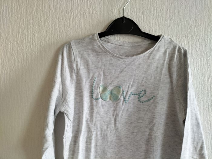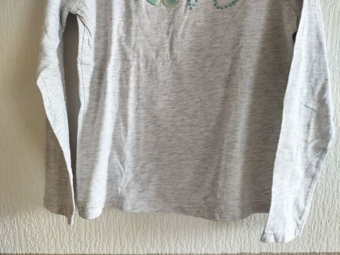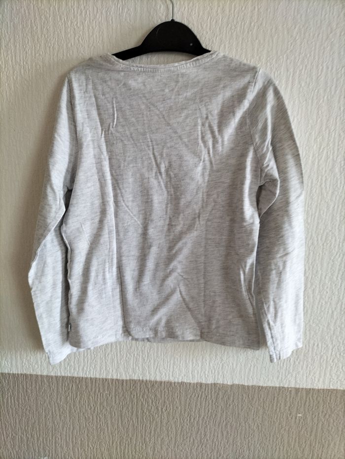 T-shirt manche longue peu porté très bon état taille 6 ans gris et blanc