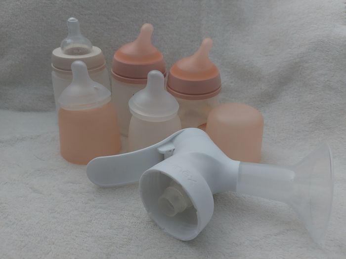 Kit de tire lait manuel et biberons suavinex. Très peu voir pas du tout servi pour certains biberons et tétines. Le tire lait à servi 1 seule fois.