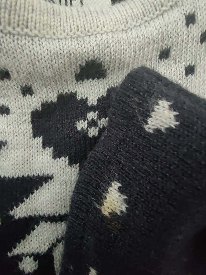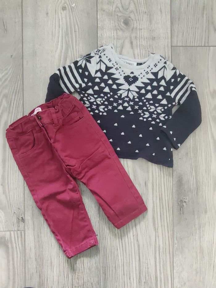 Ensemble composé d'un pantalon dpam et d'un pull Jean Bourget. En très bon état malgré une petite tâche au niveau d'une manche du pull.