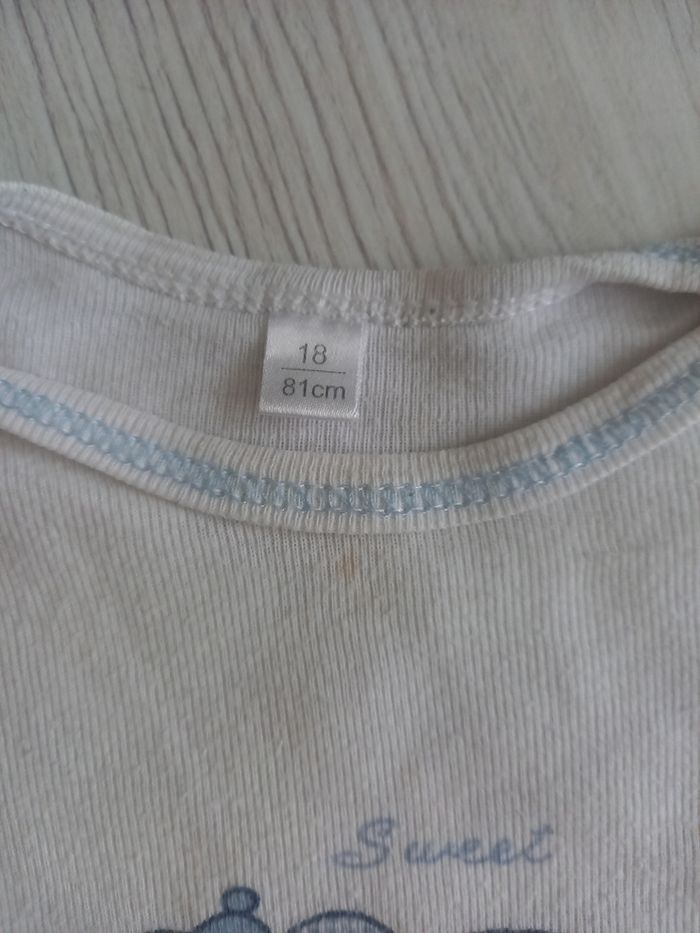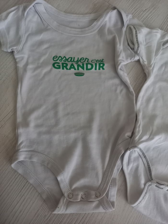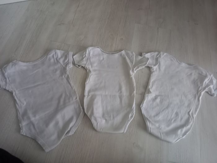 Lot de 3 bodies manches courtes taille 18 mois Le 1er et 3ème sont un peu taché. Le 2 ème il y a une pression cassée