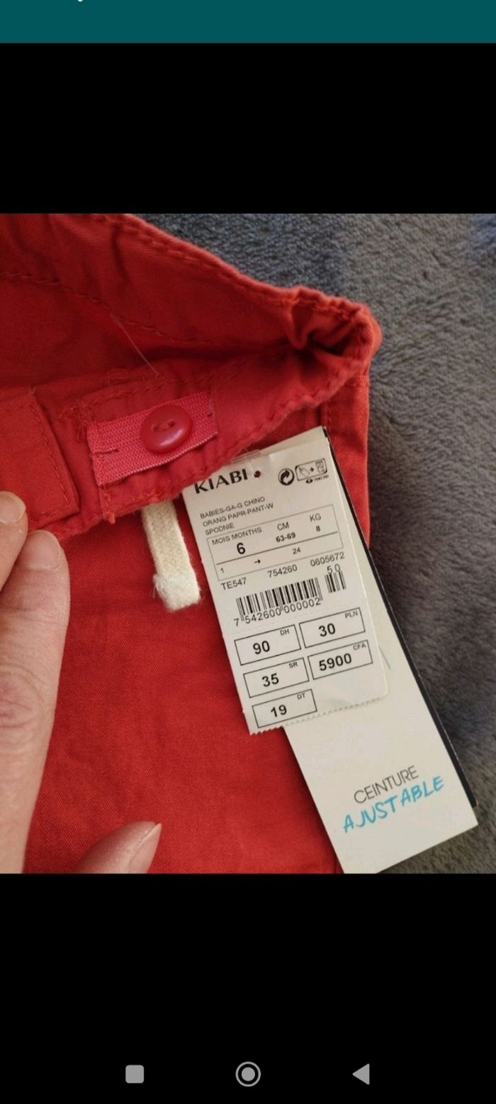 Pantalon en toile corail de marque Kiabi Ceinture élastiquée + boutons de serrage à la taille. Taille 6 mois Neuf avec étiquette