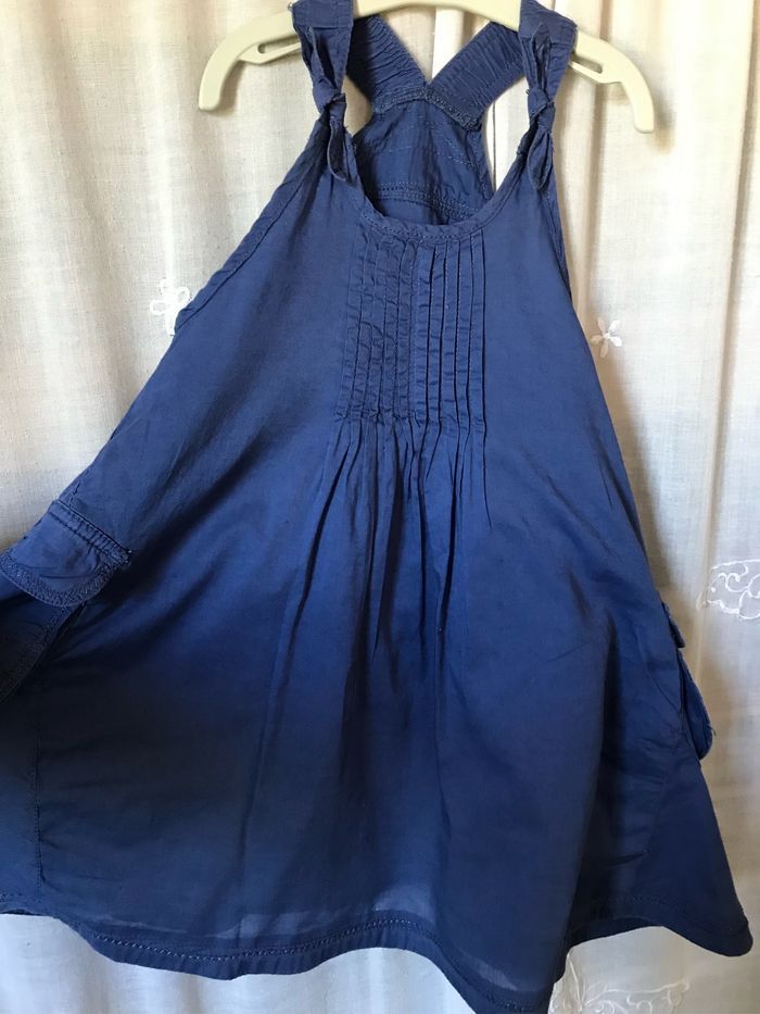 Robe bleue à bretelles , 2 poches cargo 100% coton léger Entièrement doublée Taille 5 ans 110 cm C&A