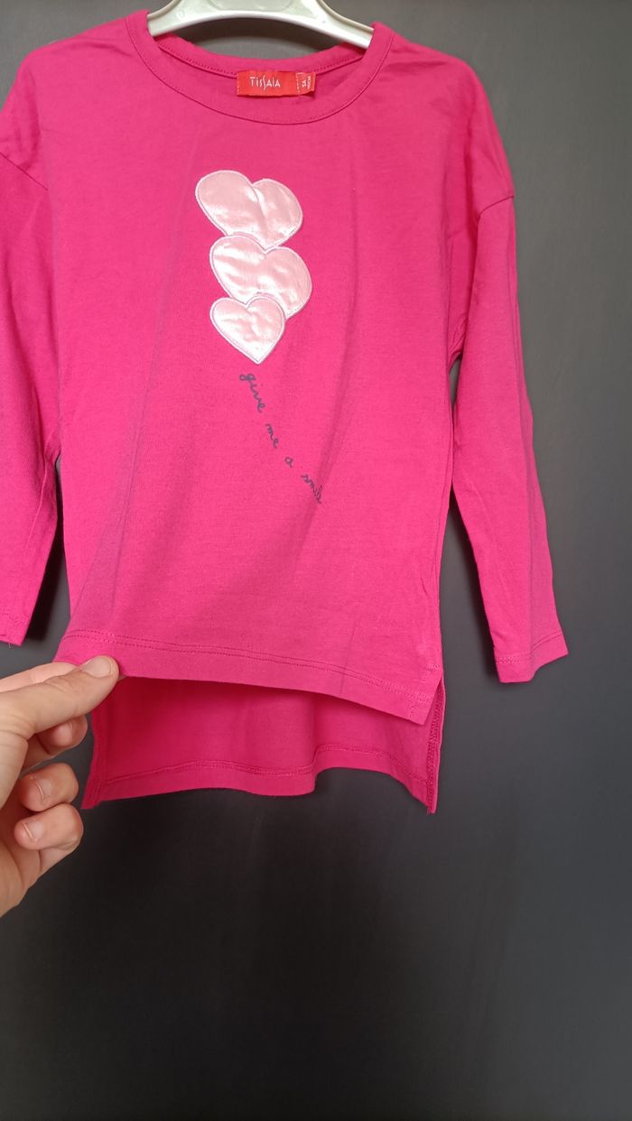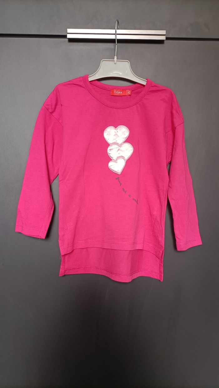 Haut manches longues rose, taille 5 ans, en très bon état. L'avant est plus court que l'arrière. 2€
