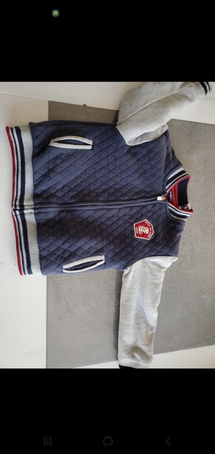 Veste okaidi 5 ans bon etat bleu gris et rouge