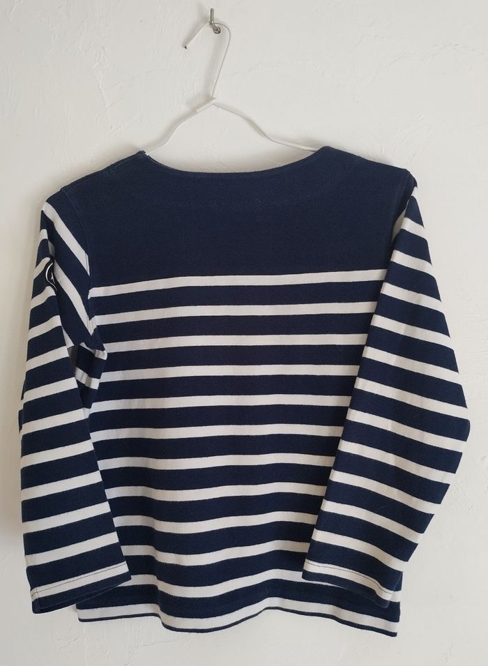 Belle marinière de la marque Jean Paul Gaultier (Gaultier Junior) rayée bleu marine et blanc pour un garçon ou une fille de 7-9 ans. Avec son écusson Ancre ⚓. Un grand classique chic ! Cette marinière a été peu portée et reste dans un très bon état général. Peu de signes d'usure et pas de tâche ni de trou. Matière : 100% coton. Aisselle à aisselle : environ 42 cm. Épaule au bas de la marinière : environ 48 cm.