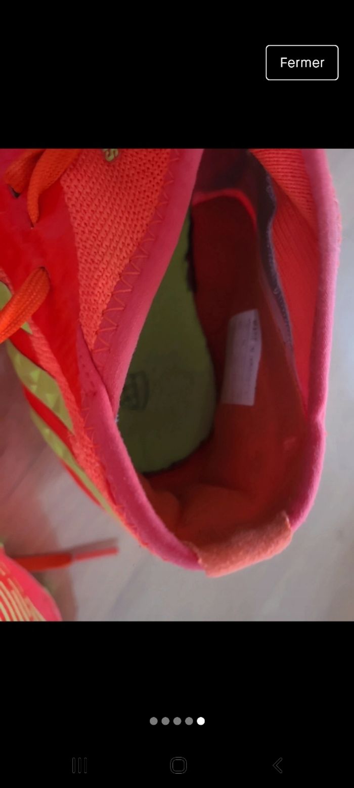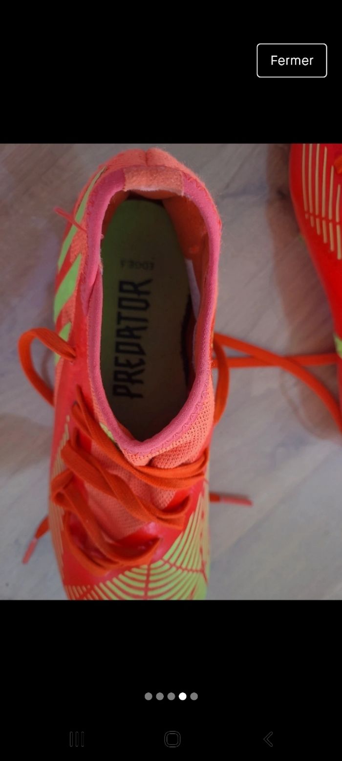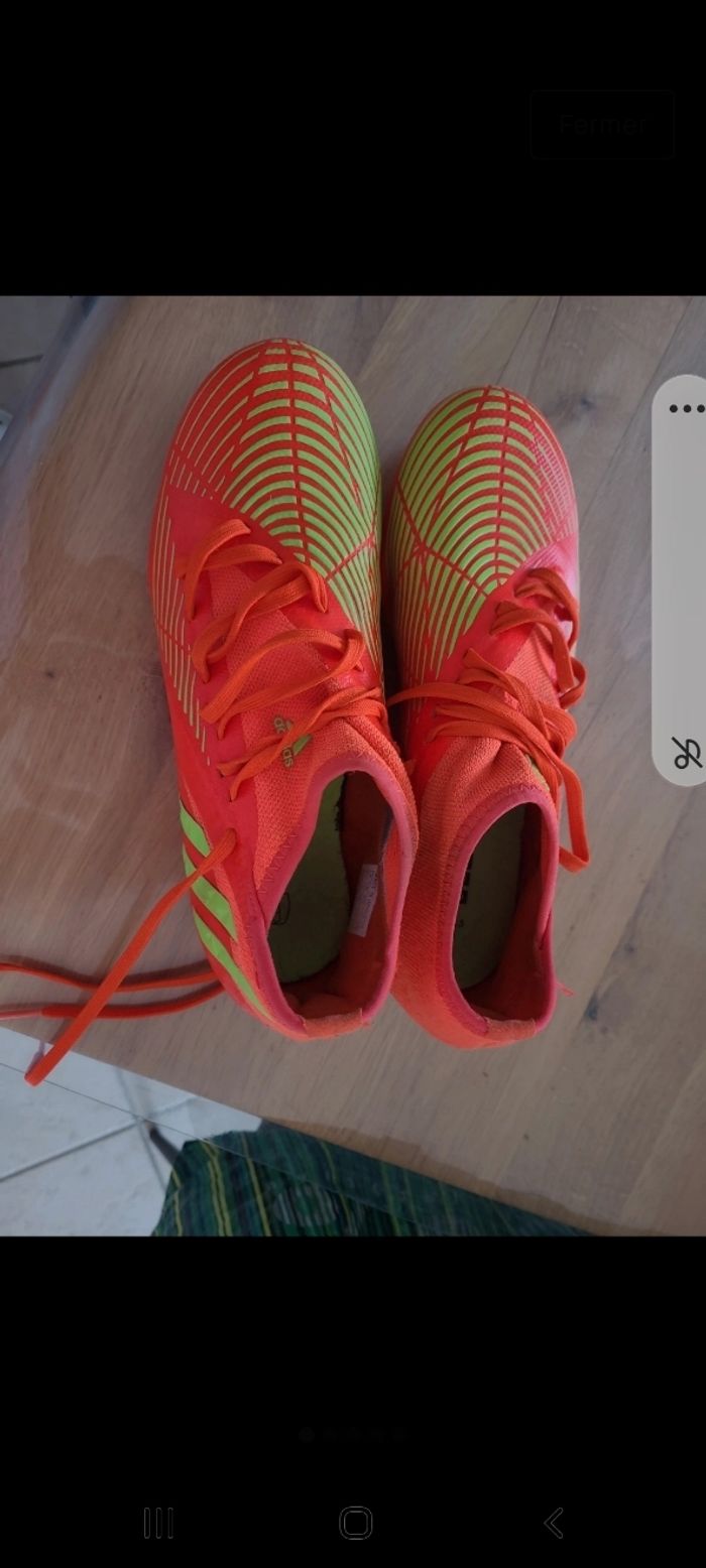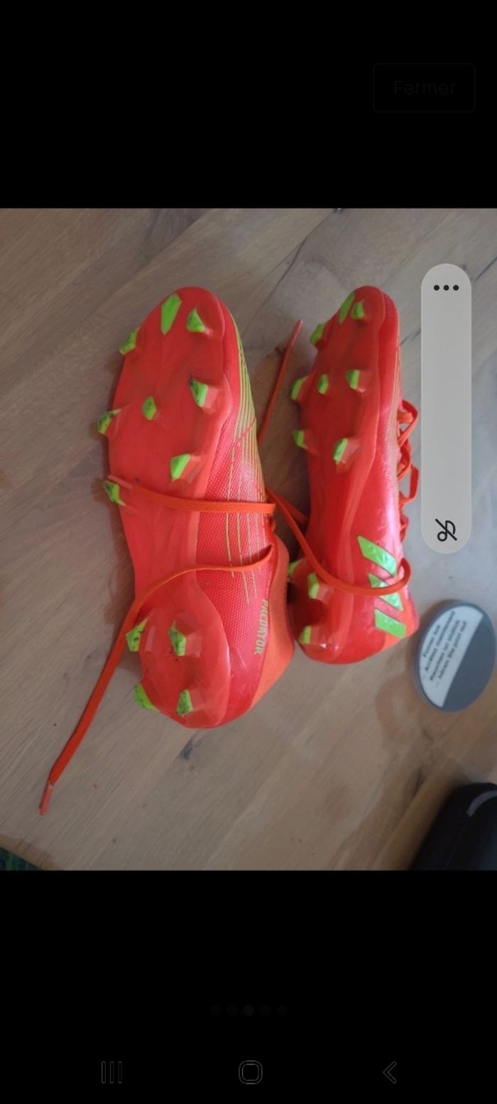 Crampon adidas predator en 38.5 en très bon etat juste une petite tache qui doit sûrement disparaître avec un pr
