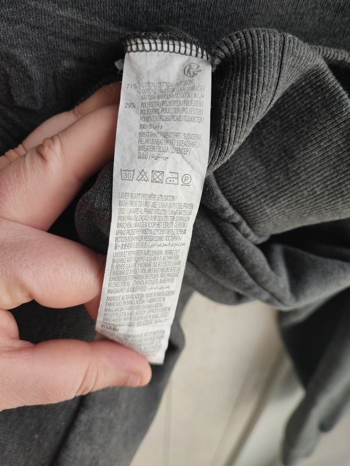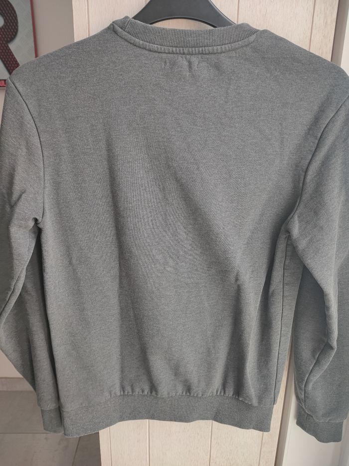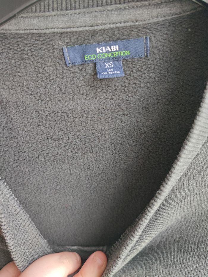 Sweat chaud doublé polaire Couleur gris anthracite tacheté blanc (n'est pas uni quoi il y'a une impression de délavé) écriture en relief Marque Kiabi eco responsable Taille XS (14 ans) Très peu porté