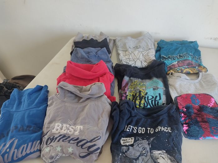 Pulls 1€ pièce Pyjama polaire 3€ (bas et haut) Sous pulls 1€ pièce et maillot m. Longue Maillot m.courte 1€ pièce Bermudas et short de bain 1€ pièce Chemise 2€ pièce Boobers 4€