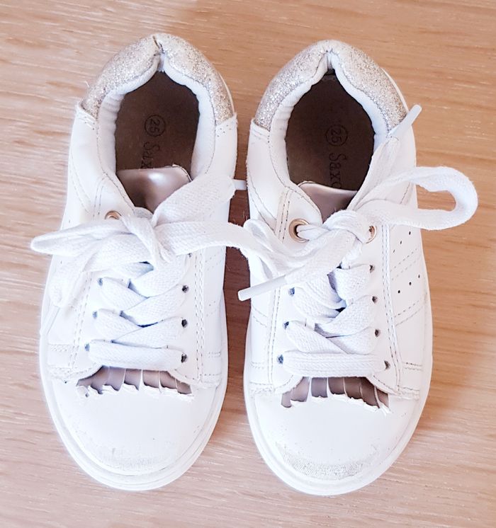🌸 Tennis à lacets - blanche et doré - Saxo Blues - P25 🌸 - photo numéro 1
