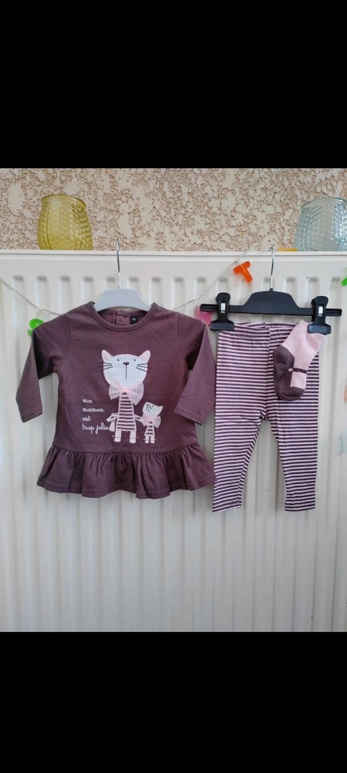 🌸Ensemble 3 pièces: legging+pull+chaussettes assorties. 🌸Excellent état, ni trous, ni tâches. 🌸Voir photos pour les détails. 🌸Sans marque, boutique indépendante. 💰 Réductions sur lot activités. #pnmettefille6mois