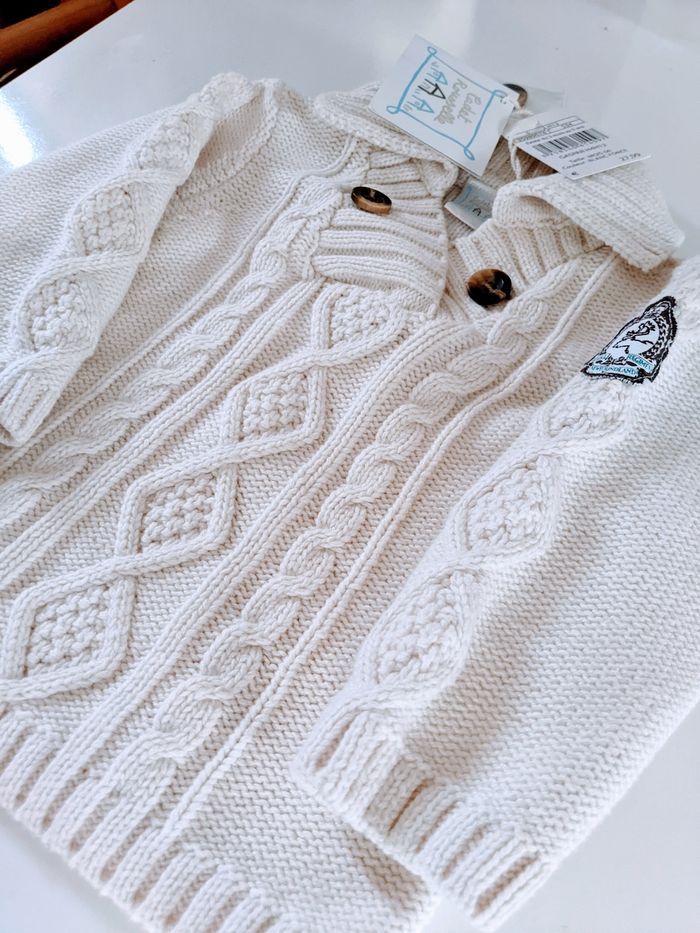 Magnifique pull torsadé coton Cadet Rousselle taille 6 mois 67 cm neuf blanc Col cheminée Neuf avec étiquette Pull venant des Galeries Lafayette, superbe qualité Acheté 28 euros Parfait pour un cadeau Mixte pour bébé fille et bébé garçon #yipin_bebe_6mois #yipin_bebe_6mois_garcon #yipin_bebe_6mois_fille #yipin_bebe_6mois_mixte