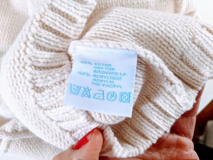 Pull torsadé coton Cadet Rousselle taille 6 mois 67 cm neuf blanc - photo numéro 4
