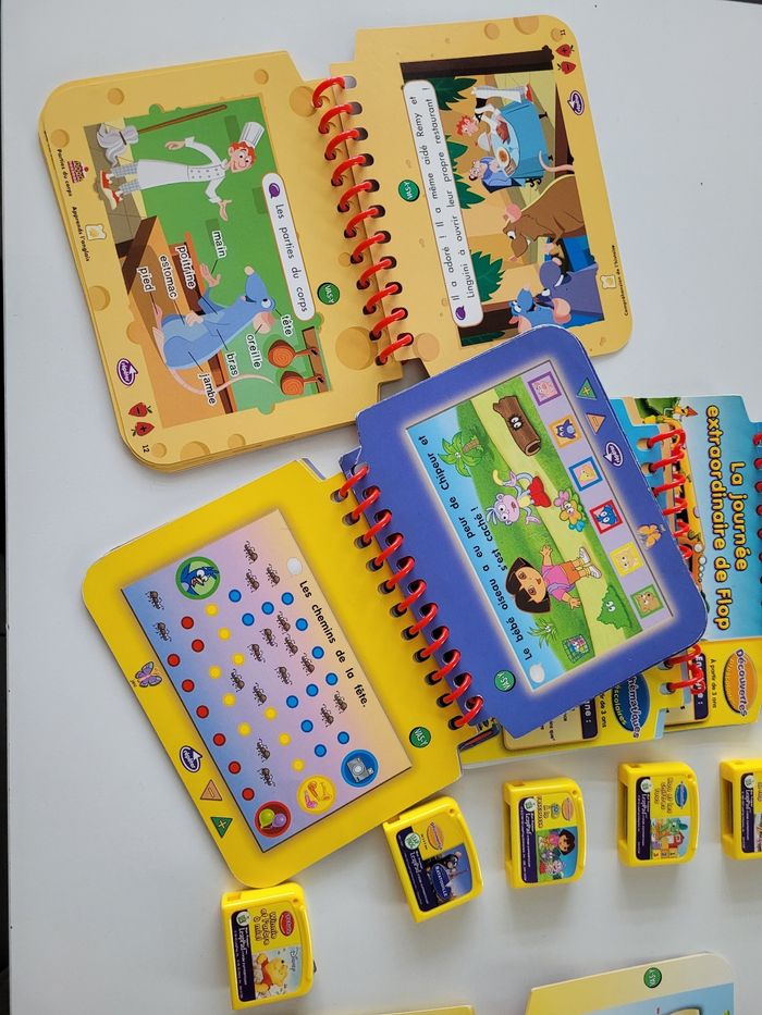 ⚠️ Je vends le lot sans le leapPad. Dernière photo le leapPad qui fonctionne avec ces jeux. ✅️En vente: 5 livrets avec chacun sa cartouche de jeu. Peuvent être vendus à l'unité. Il fonctionnent très bien, c'est le leapPad qui nous a lâché.